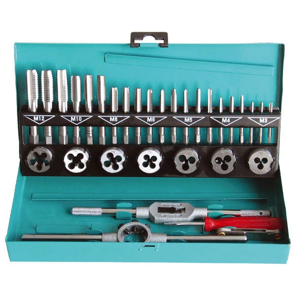EXTOL CRAFT menetfúró menetmetsző klt., fém dobozban; 32db M3-M12, jó minőségű szénacél [ 29302 ]