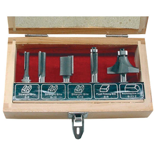 EXTOL felsőmaró klt. 5 db-os (fadobozban) ; 8mm-es befogással [ 44025 ]