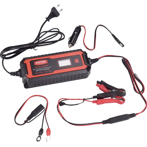 EXTOL PREMIUM akkutöltő, autós, mikroprocesszoros, intelligens, 2/4 Amp, DC 12V/6V[ 8897302 ]