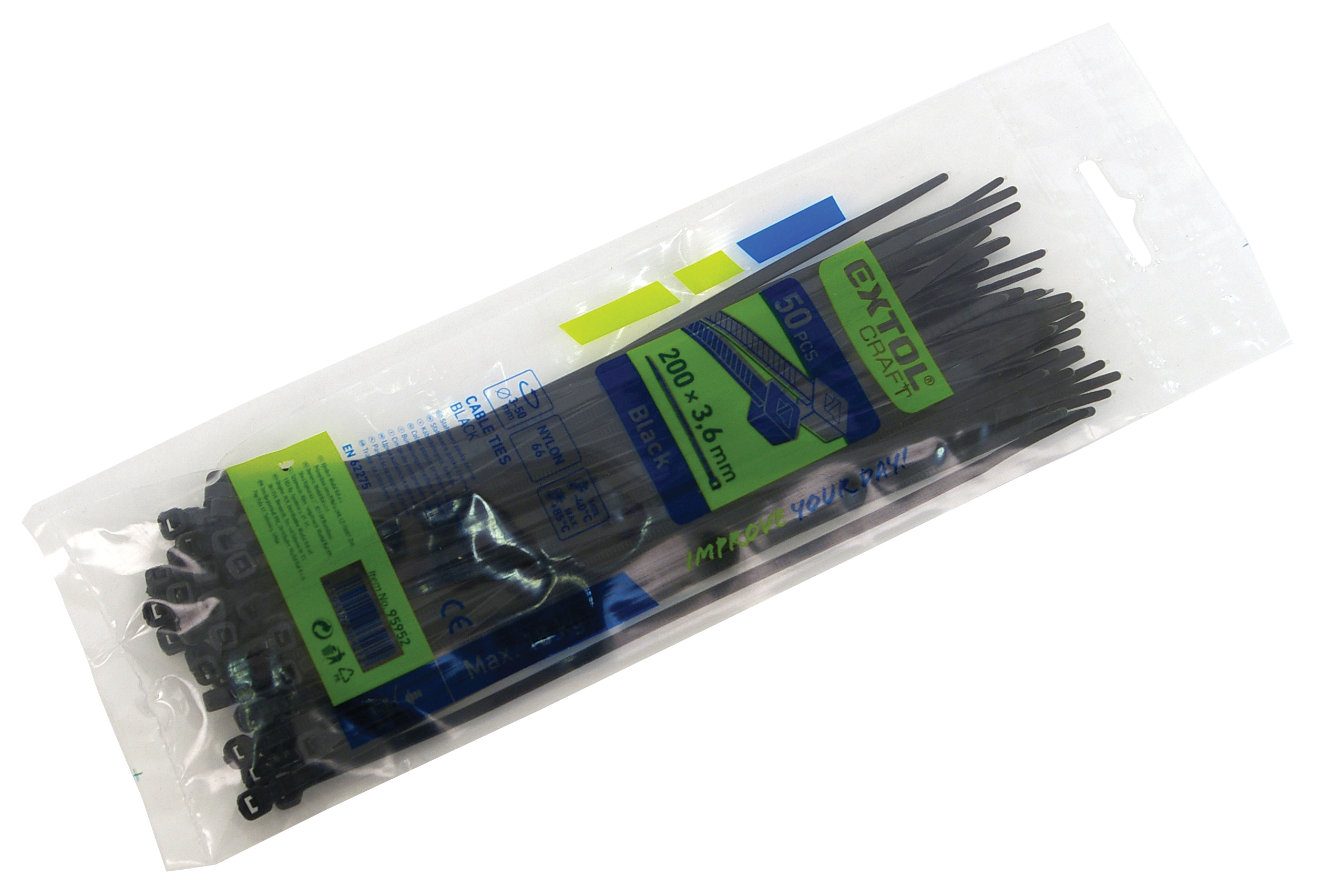 EXTOL PREMIUM kábelkötegelő 3,6×200mm 100db, 4 színű (piros, kék, sárga, zöld), nylon; [ 8856196 ]