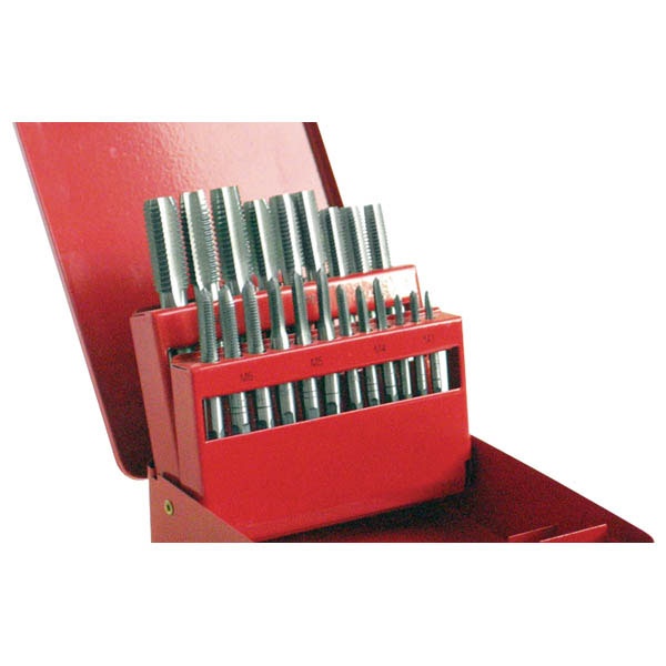 EXTOL PREMIUM menetfúró klt., kézi, fém dobozban; 21db, M3,4,5,6,8,10,12, jó minőségű szénacél [ 29301 ]