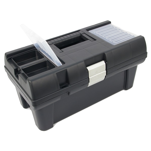 MB szerszámosláda, műanyag 525×255×245mm, 20″ rendező felül, alucsatos, tálcával, fekete, lakatolható [ 3385072 ]