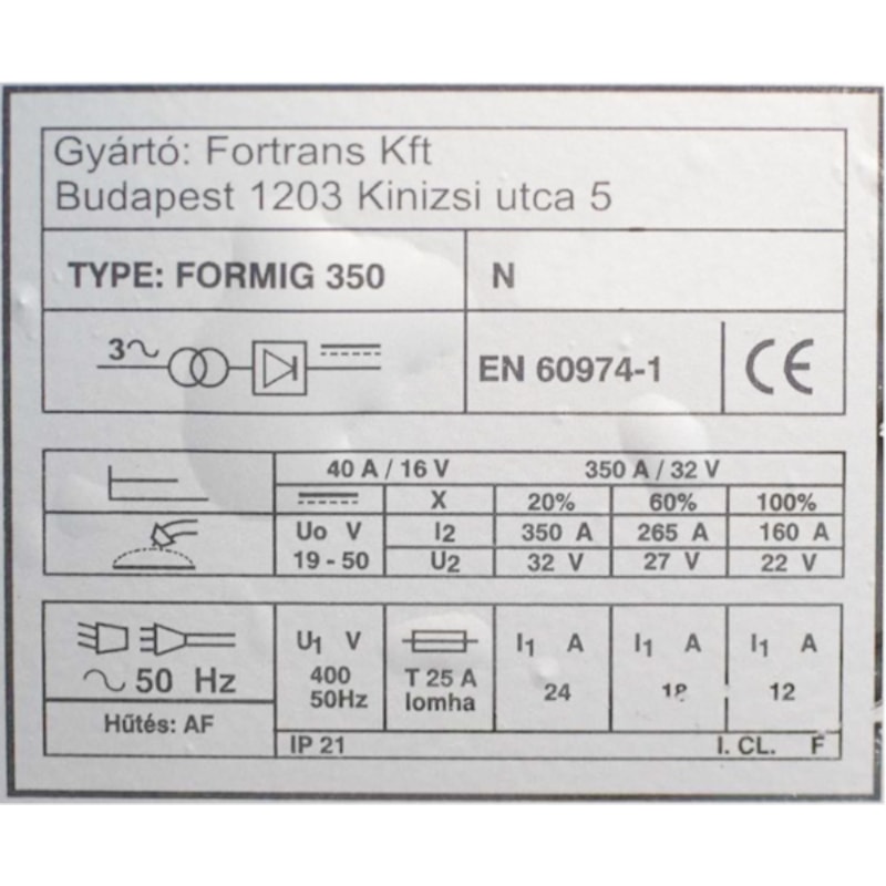 FORTRANS FORMIG 350 védőgázas transzformátoros hegesztőgép [ fort350]