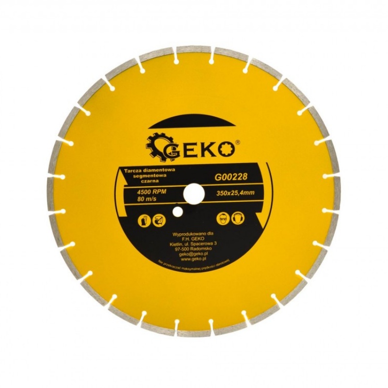 GEKO Gyémánt vágótárcsa szegmentált L-TECH fekete 350×25.4 [ G00228 ]