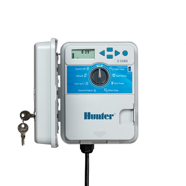 A HUNTER X-Core 601-E tökéletes választás azok számára, akik egy strapabíró, könnyen programozható és megbízható kültéri öntözésvezérlőt keresnek, amely az időjárási viszonyokhoz is igazítható.