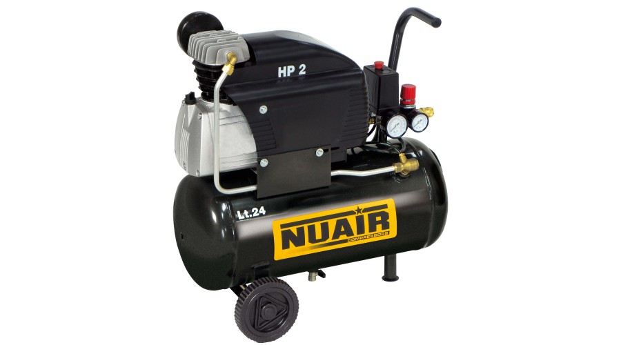 A 1,5 kW-os 2 lóerős motorral szerelt kis helyigényű hobbi Nuair kompresszor acél hengerrel és acél dugattyúgyűrűkkel készül, amely hosszú élettartamot és vesztesség mentes sűrítést biztosít. A kompresszor a kerekes kivitelnek köszönhetően könnyen mozgatható, a két nyomásmérő óráról a tartály és a beszabályozott nyomásérték is leolvasható. Ajánljuk mindazon felhasználók részére, akik hobbi célra mindennap használható megbízható kompresszort szeretnének.