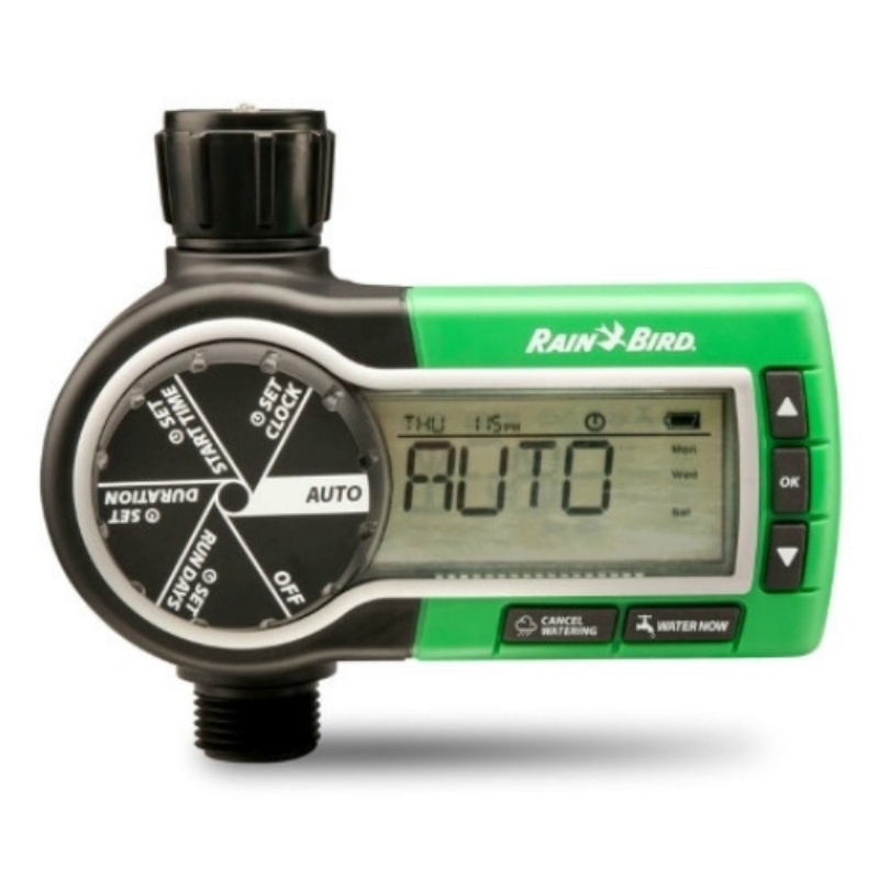 A Rain Bird csapra szerelhető vezérlő ideális kisebb kertekhez, balkonládákhoz, vagy szezonális öntözésre. Az 1 zónás vezérlő automatikusan nyitja és zárja a vizet a beállított időzítés alapján.