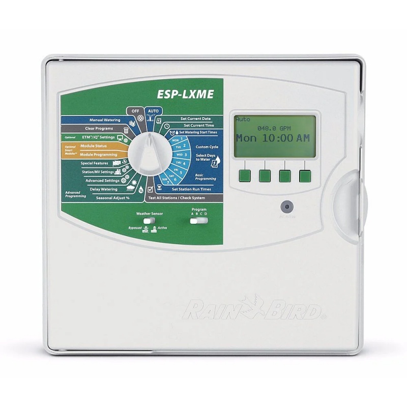 A Rain Bird ESP-LXME moduláris beltéri vezérlő 8 zónától akár 42 zónáig bővíthető, így kiválóan alkalmas összetettebb öntözőrendszerek vezérlésére. Professzionális parkok, sportlétesítmények, nagy zöldterületek ideális vezérlőegysége.